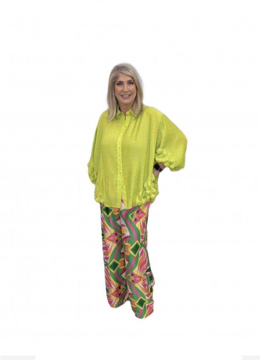 Button through shirt with herringbone pleat and bubble side detail panels/sleeve detail.
